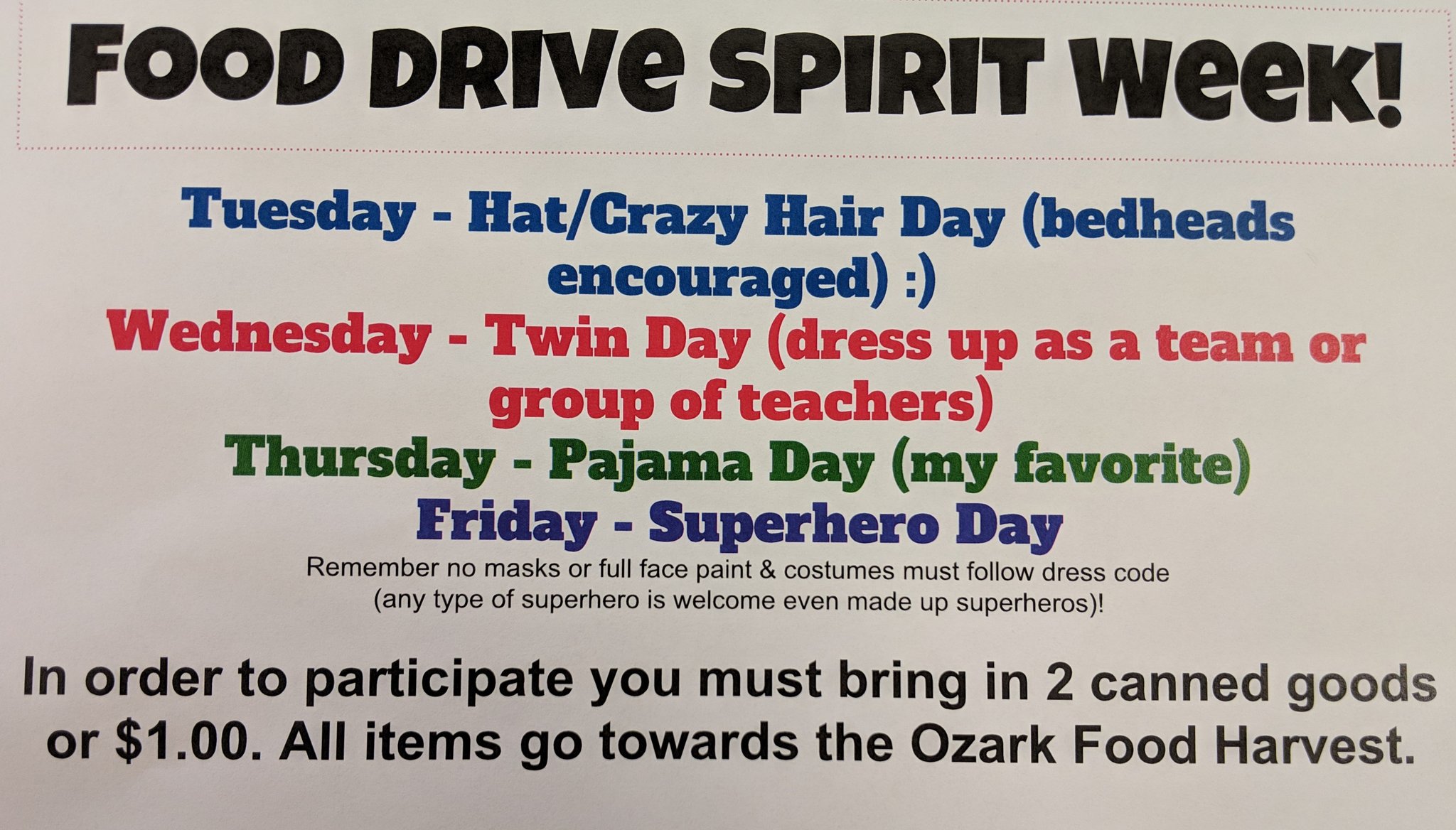 Carver Middle School On Twitter Cougars Next Week Is Food Drive Spirit Week Donate To Ozarks Food Harvest And Show Your Spirit Spsfoodfight Hungerheroes Https T Co Lds4tvznr4 Twitter